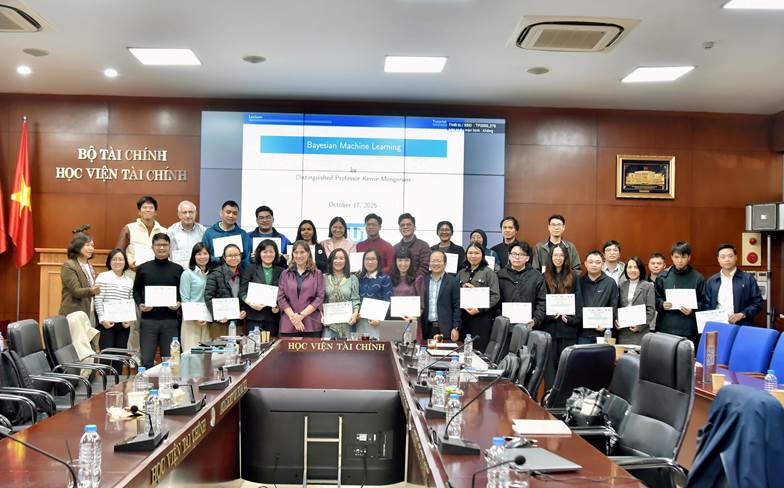 Chuỗi bài giảng ISI Lecture Series 2025 do Giáo sư Kerrie Mengersen thực hiện tại Học viện Tài chính thu hút đông đảo các chuyên gia quốc tế như: ông Ngeth Youdarith – Phó Chủ tịch Hội Toán học Campuchia; các học viên thuộc các cơ sở giáo dục Đại học đến từ Philippines, Indonesia, Thái Lan, Pháp. Buổi học còn quy tụ nhiều chuyên gia xác suất – thống kê hàng đầu Việt Nam như: PGS. TS Cấn Văn Hảo (PGS sư trẻ nhất năm 2024, Viện Toán học); TS. Phạm Đình Tùng – Phó Trưởng Khoa Toán – Cơ – Tin học, trường ĐH Khoa học Tự nhiên, ĐHQGHN; PGS. TS. Phạm Việt Hùng – Trưởng phòng Toán rời rạc, Xác suất và Thống kê, Viện Toán học – Viện HLKH&CNVN; PGS. TS. Ngô Hoàng Long – Phó Trưởng Khoa Toán – Tin, trường Đại học Sư phạm Hà Nội cùng các nhà khoa học đến từ đại học Bách Khoa, Ngoại thương, Thương mại, Kinh tế Quốc dân, đại học Công Nghiệp, đại học RMIT và các tổ chức tài chính, ngân hàng, Viettel.